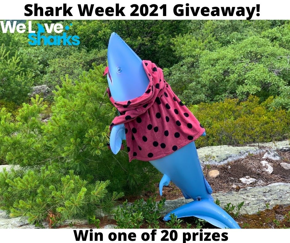 Shark week is just about a week away and we decided to do a big giveaway that ends mid shark week on July 14th. Nibbles the hiking shark, has been staying with our friends in New York until it’s time for him to head over to Discovery to do his shark thing.